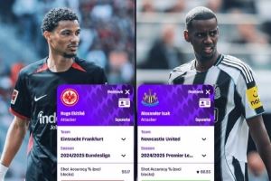 上赛季埃基蒂克VS伊萨克全面数据对比:射门准确率55.17%对60.53%